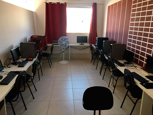 Dispomos de amplo espaço para as atividades pedagógicas, a infraestrutura dispõem de laboratório de informática equipado com ar-condicionado, 08 notebooks e 12 computadores instalados em balcões, com cabeamento estruturado e rede elétrica aterrada, acesso a internet, softwares necessários, permitindo o desenvolvimento de atividades na plataforma Windows.